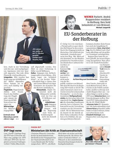 wiener Parkett. Andrä Rupprechter residiert in Hofburg. Den Sold bekommt er von Brüssel. Michael Jungwirth