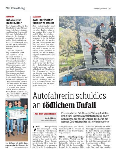 Freispruch von fahrlässiger Tötung: Autolenkerin fuhr in Dornbirner Unterführung gegen herunterhängendes Stahlseil, das daran ziehenden ÖBB-Mitarbeiter in Tiefe schleuderte.