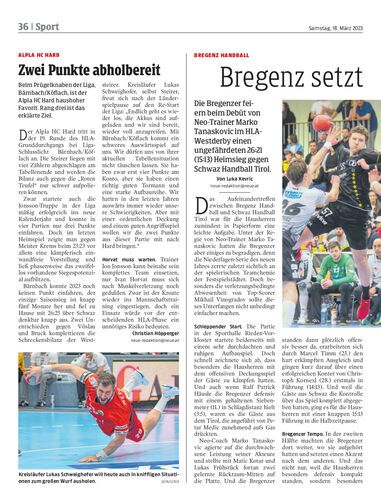 Die Bregenzer feiern beim Debüt von Neo-Trainer Marko Tanaskovic im HLA-Westderby einen ungefährdeten 26:21 (15:13) Heimsieg gegen Schwaz Handball Tirol.