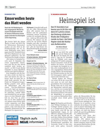 Nach der 4:8-Niederlage in der vergangenen Woche im ersten Finalspiel steht der SC Samina Hohenems heute gegen Steindorf im Rückspiel unter Zugzwang.