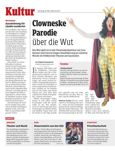 Um Wut geht es in der Theaterproduktion von Lisa Suitner und Vrovro Geiger. Uraufführung ist nächste Woche im Feldkircher Theater am Saumarkt.