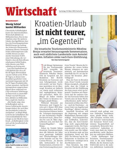 Die kroatische Tourismusministerin Nikolina Brnjac erwartet herausragende Sommersaison, auch weil südlichste Landesteile zum Autoziel wurden. Inflation sinke nach Euro-Einführung. Von Uwe Sommersguter