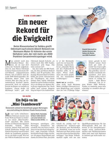 Beim Riesentorlauf in Soldeu greift Odermatt nach einem Allzeit-Rekord von Hermann Maier: Er könnte der erste Skifahrer sein, der mit mehr als 2000 Punkten Gesamtweltcupsieger wird.