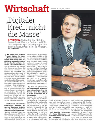Stefan Dörfler, CEO der Ersten Bank, über die Online- und Filialstrategie der Sparkassengruppe. „Der persönliche Kontakt bleibt im Konzept.“ Von Adolf Winkler