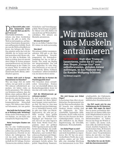 Statt über Trump zu lamentieren, sollte die EU unter dem Slogan „Europe first“ zum selbstbewussten, globalen Akteur aufsteigen, so das Plädoyer von Ex-Kanzler Wolfgang Schüssel. Von Michael Jungwirth