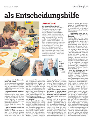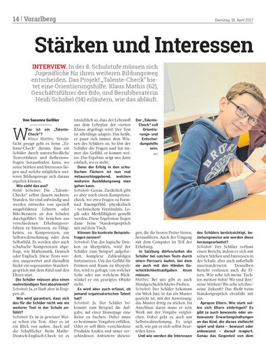 Interview. In der 8. Schulstufe müssen sich Jugendliche für ihren weiteren Bildungsweg entscheiden. Das Projekt „Talente-Check“ bietet eine Orientierungshilfe. Klaus Mathis (62), Geschäftsführer des Bifo, und Berufsberaterin Heidi Schobel (54) erläutern, wie das abläuft.