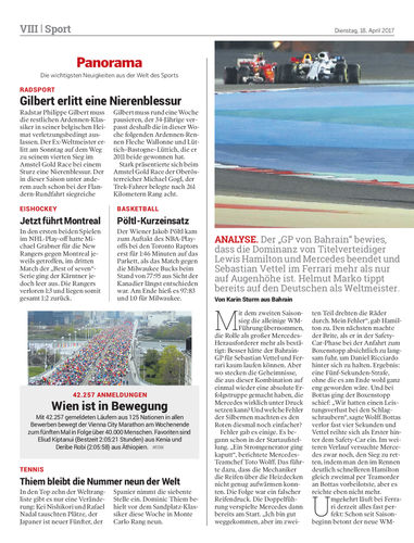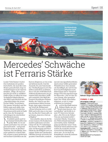analyse. Der „GP von Bahrain“ bewies, dass die Dominanz von Titelverteidiger Lewis Hamilton und Mercedes beendet und Sebastian Vettel im Ferrari mehr als nur auf Augenhöhe ist. Helmut Marko tippt bereits auf den Deutschen als Weltmeister. Von Karin Sturm aus Bahrain