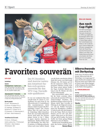 Der FC Dornbirn und Austria Lustenaus Amateure haben sich gestern souverän für das VFV-Cup-Viertelfinale qualifiziert.
