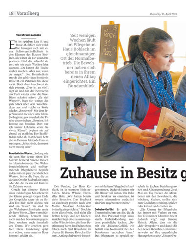 Seit wenigen Wochen läuft im Pflegeheim Haus Koblach im gleichnamigen Ort der Normalbetrieb. Die Bewohner haben sich bereits in ihrem neuen Alltag eingerichtet. Ein Rundumblick.