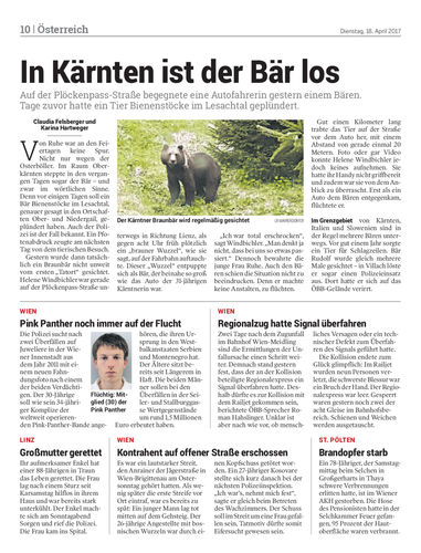 Auf der Plöckenpass-Straße begegnete eine Autofahrerin gestern einem Bären. Tage zuvor hatte ein Tier Bienenstöcke im Lesachtal geplündert.