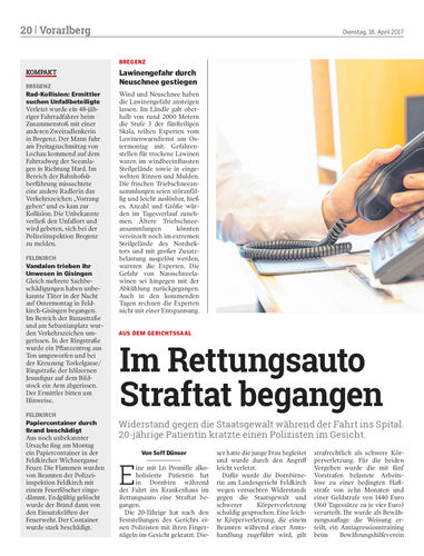 Widerstand gegen die Staatsgewalt während der Fahrt ins Spital. 20-jährige Patientin kratzte einen Polizisten im Gesicht.