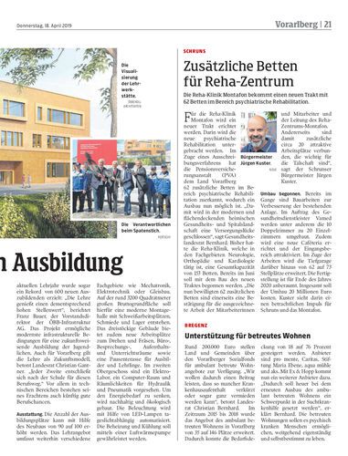 Die Reha-Klinik Montafon bekommt einen neuen Trakt mit 62 Betten im Bereich psychiatrische Rehabilitation.