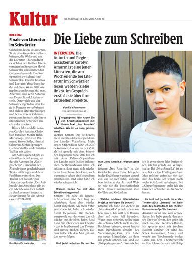 Interview. Die Autorin und Regieassistentin Carolyn Amann ist eine jener Literaten, die am Wochenende bei Literatur im Schwärzler lesen werden (siehe links). Im Gespräch erzählt sie über ihre aktuellen Projekte.