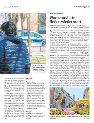 Städte Bregenz und Feldkirch preschen vor und lassen ab nächster Woche wieder Märkte zu, Dornbirn wartet noch ab.