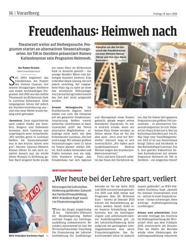 Theaterzelt weiter auf Herbergssuche. Programm startet an alternativen Veranstaltungsorten. Im TiK in Dornbirn präsentiert Romeo Kaltenbrunner sein Programm Heimweh.