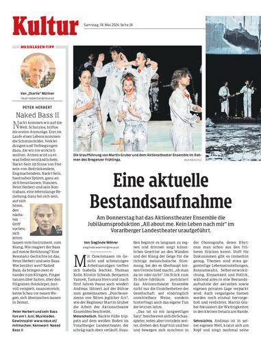 Am Donnerstag hat das Aktionstheater Ensemble die Jubiläumsproduktion „All about me. Kein Leben nach mir“ im Vorarlberger Landestheater uraufgeführt.
