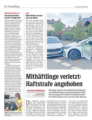 Häftling verletzte im Feldkircher Gefängnis zwei Mithäftlinge mit Faustschlägen leicht. Berufungsgericht erhöhte Gefängnisstrafe für Vorbestraften von zwei auf neun Monate.