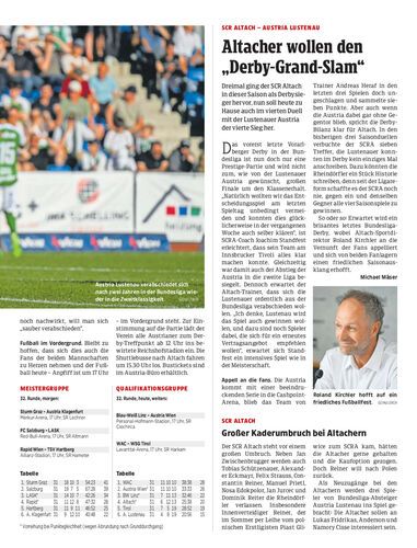 Dreimal ging der SCR Altach in dieser Saison als Derbysieger hervor, nun soll heute zu Hause auch im vierten Duell mit der Lustenauer Austria der vierte Sieg her.