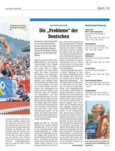 Die Besten sind nicht in Götzis, für das Hypomeeting wurden dennoch neun DLV-Starter gefunden. Bundestrainer Frank Müller schaut gespannt auf Sprengel und Wolter.