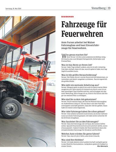 Aron Furxer arbeitet bei Walser Fahrzeugbau und baut Einsatzfahrzeuge für Feuerwehren.