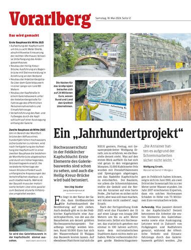 Hochwasserschutz in der Feldkircher Kapfschlucht: Erste Elemente des Galeriebauwerks sind schon zu sehen, und auch die Heilig-Kreuz-Brücke wird bald betoniert.