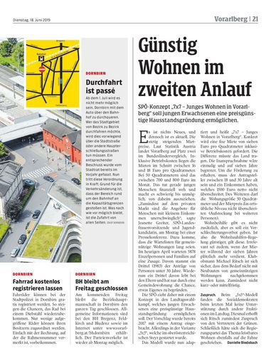 SPÖ-Konzept „7x7 – Junges Wohnen in Vorarlberg“ soll jungen Erwachsenen eine preisgünstige Hausstandsgründung ermöglichen.