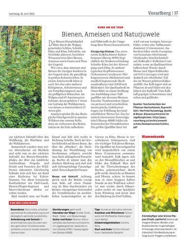 Wanderführerin Hertha Glück und Fotograf Gerhard Vylet wandern ab Dorfmitte Schlins über den Rönsberg nach Röns und durchs Faweschga-Tobel wieder zurück.