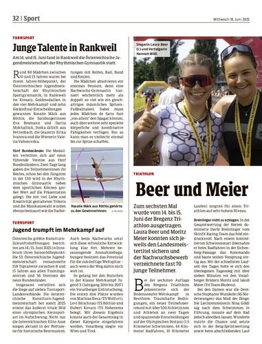 Zum sechsten Mal wurde vom 14. bis 15. Juni der Bregenz Triathlon ausgetragen. Laura Beer und Moritz Meier konnten sich jeweils den Landesmeistertitel sichern und der Nachwuchsbewerb verzeichnete fast 70 junge Teilnehmer.