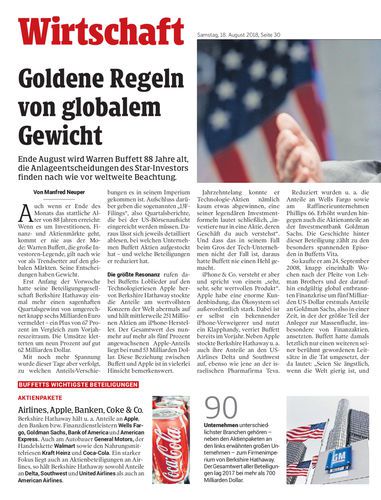 Ende August wird Warren Buffett 88 Jahre alt, die Anlageentscheidungen des Star-Investors finden nach wie vor weltweite Beachtung.
