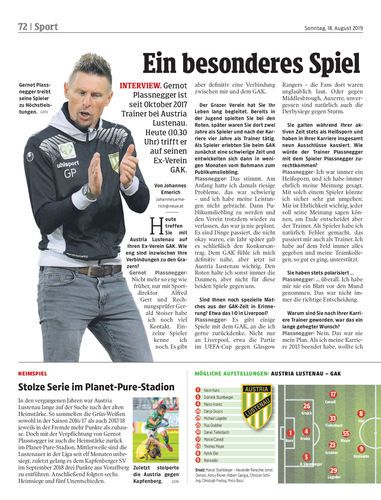 Interview. Gernot Plassnegger ist seit Oktober 2017 Trainer bei Austria Lustenau. Heute (10.30 Uhr) trifft er auf seinen Ex-Verein GAK.