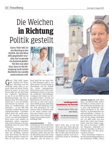 Garry Thür (46) ist ein Neuling in der Politik. Als die Neos 2012 gegründet wurden, hat er gerade im Ausland gelebt. Für ihn war aber klar, dass er die Bewegung nach seiner Rückkehr ins Ländle unterstützen will.