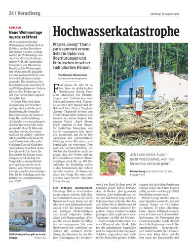 Pfarrer „Georg“ Thaniyath sammelt erneut Geld für Opfer von Überflutungen und Erdrutschen in seiner südindischen Heimat.