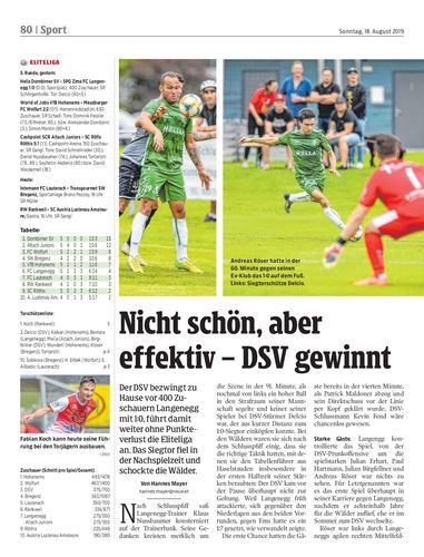 Der DSV bezwingt zu Hause vor 400 Zuschauern Langenegg mit 1:0, führt damit weiter ohne Punkteverlust die Eliteliga an. Das Siegtor fiel in der Nachspielzeit und schockte die Wälder.
