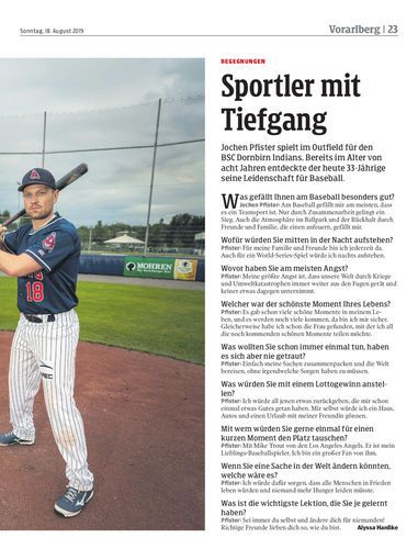 Jochen Pfister spielt im Outfield für den BSC Dornbirn Indians. Bereits im Alter von acht Jahren entdeckte der heute 33-Jährige seine Leidenschaft für Baseball.