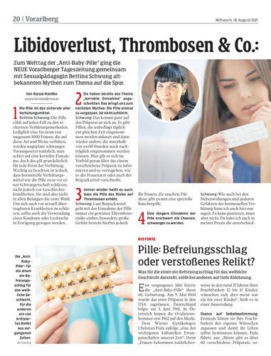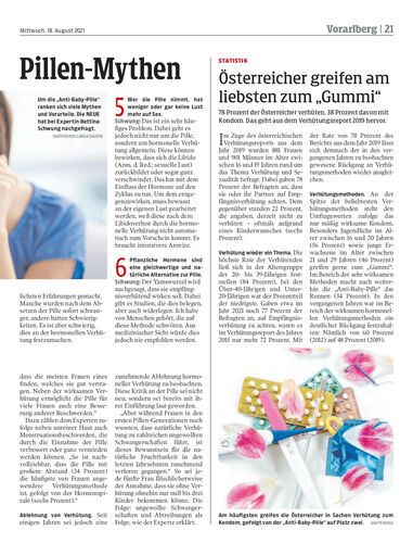 Zum Welttag der „Anti-Baby-Pille“ ging die NEUE Vorarlberger Tageszeitung gemeinsam mit Sexualpädagogin Bettina Schwung altbekannten Mythen zum Thema auf die Spur.