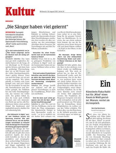 Interview. Festspiel-Intendantin Elisabeth Sobotka spricht über die bisherige Saison, die Opernstudio-Verschiebung, „Wind“ (siehe auch rechts)und „Nero“.