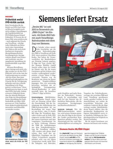 „Desiro ML“ ist seit 2015 in Österreich als „ÖBB Cityjet“ im Einsatz. Ab Ende 2022 fahren auch Vorarlbergs Bahnkunden mit dem Zug von Siemens.