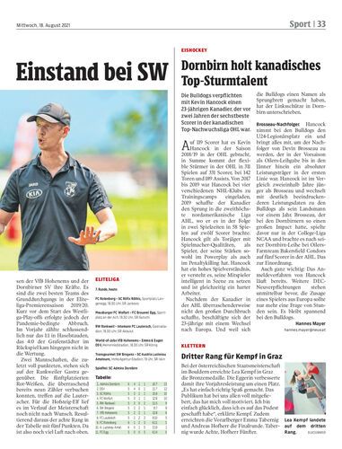 Die Bulldogs verpflichten mit Kevin Hancock einen 23-jährigen Kanadier, der vor zwei Jahren der fünftbeste Scorer in der kanadischen Top-Nachwuchsliga OHL war.