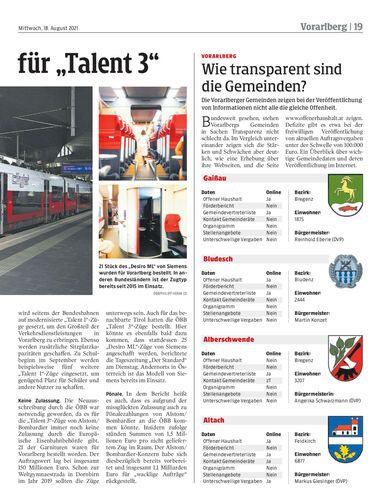 Die Vorarlberger Gemeinden zeigen bei der Veröffentlichung von Informationen nicht alle die gleiche Offenheit.