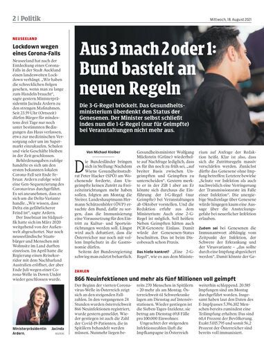 Die 3-G-Regel bröckelt. Das Gesundheitsministerium überdenkt den Status der Genesenen. Der Minister selbst schließt indes nun die 1-G-Regel (nur für Geimpfte) bei Veranstaltungen nicht mehr aus.