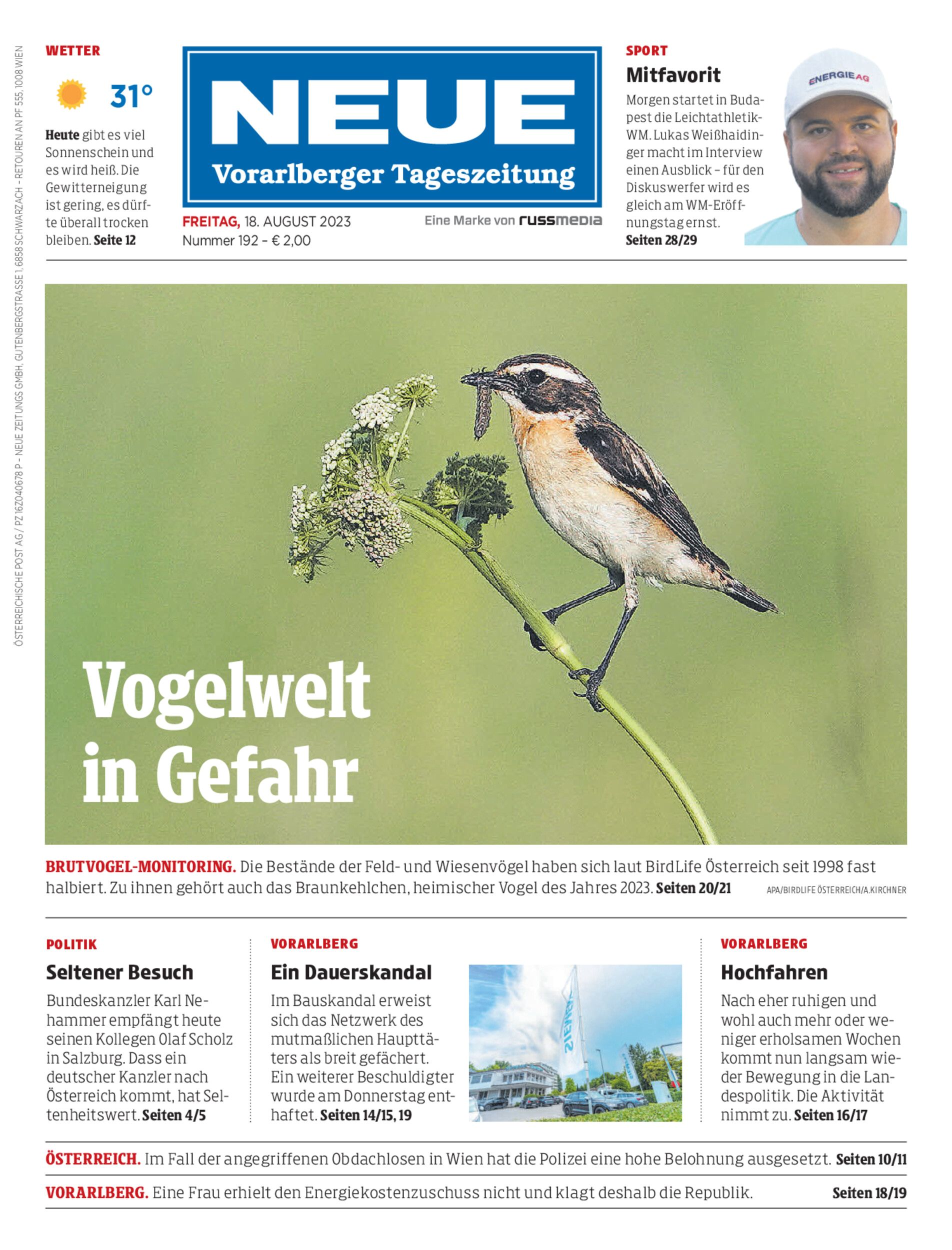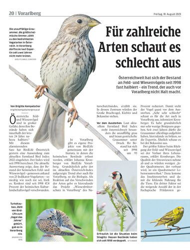 Österreichweit hat sich der Bestand an Feld- und Wiesenvögeln seit 1998 fast halbiert – ein Trend, der auch vor Vorarlberg nicht Halt macht.