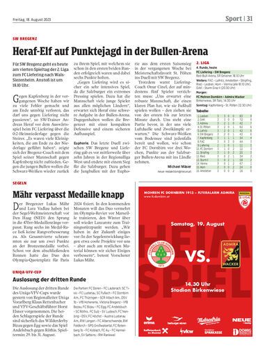 Für SW Bregenz geht es heute am vierten Spieltag der 2. Liga zum FC Liefering nach Wals-Siezenheim. Anstoß ist um 18.10 Uhr.
