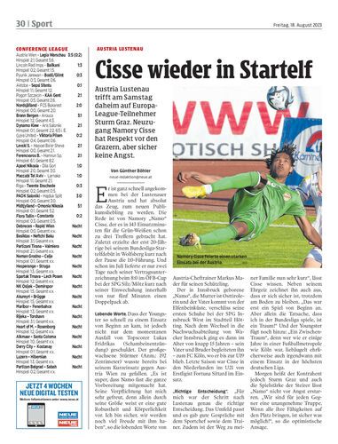 Austria Lustenau trifft am Samstag daheim auf Europa-League-Teilnehmer Sturm Graz. Neuzugang Namory Cisse hat Respekt vor den Grazern, aber sicher keine Angst.