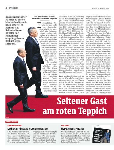 Erster offizieller Besuch seit elf Jahren: Kanzler Nehammer empfängt Amtskollegen Scholz in Salzburg. Auf der Agenda steht das heikle Thema Grenzkontrollen.