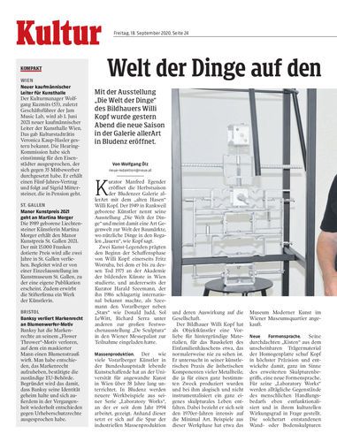 Mit der Ausstellung „Die Welt der Dinge“ des Bildhauers Willi Kopf wurde gestern Abend die neue Saison in der Galerie allerArt in Bludenz eröffnet.