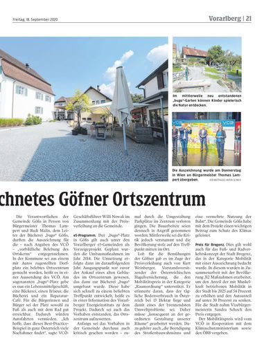 Jury des VCÖ-Mobilitätspreises würdigte die Neugestaltung des Göfner Dorfplatzes. Auch Bregenz ausgezeichnet.