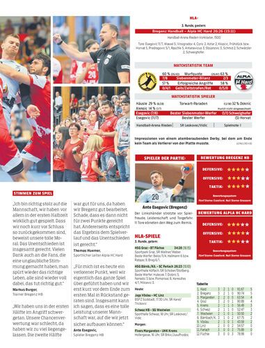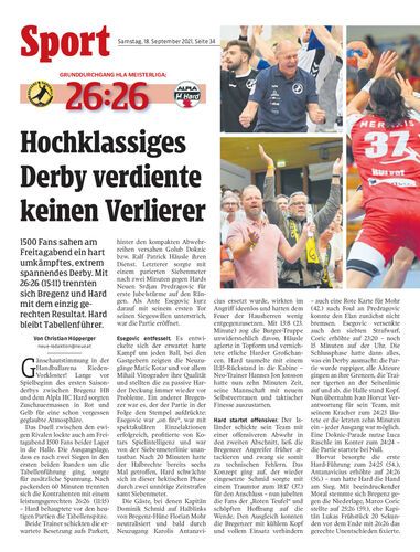 1500 Fans sahen am Freitagabend ein hart umkämpftes, extrem spannendes Derby. Mit 26:26 (15:11) trennten sich Bregenz und Hard mit dem einzig gerechten Resultat. Hard bleibt Tabellenführer.