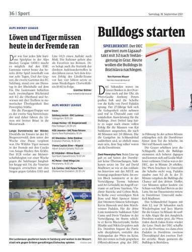 Spielbericht. Der DEC gewinnt zum Ligaauftakt mit 3:2 nach Verlängerung in Graz. Heute wollen die Bulldogs in Bratislava nachlegen.