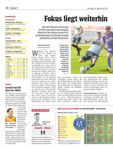 (17 Uhr) auswärts bei Austria Wien an. Der Fokus in der Entwicklung liegt für Damir Canadi weiterhin auf der Defensive.