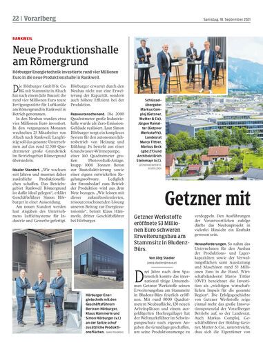 Hörburger Energietechnik investierte rund vier Millionen Euro in die neue Produktionshalle in Rankweil.